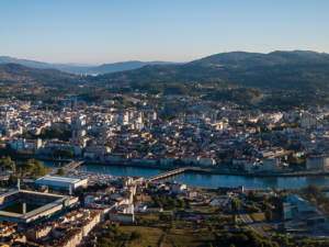Perspectiva de la ciudad de Pontevedra y la zona de O Burgo